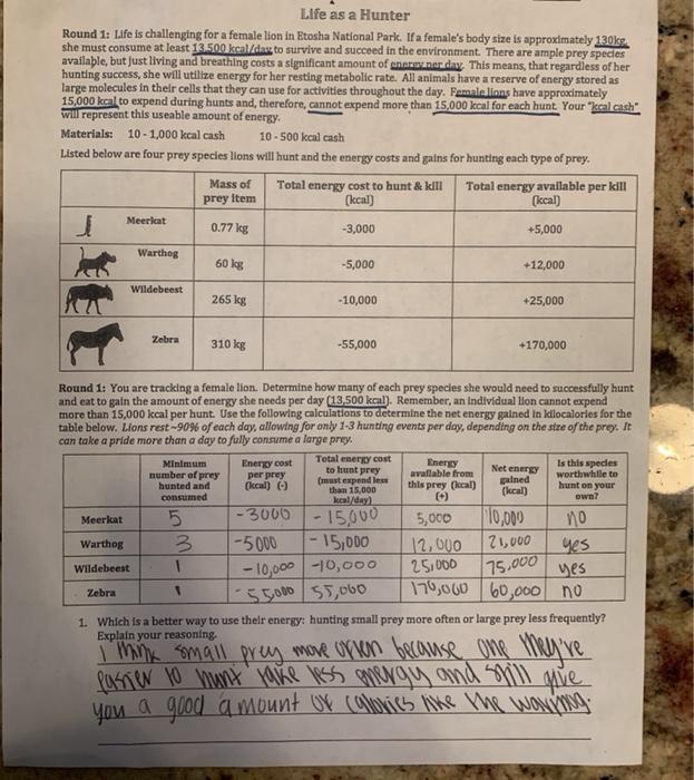 Life As A Hunter Mod Pdf Name Date Life As A Hunter Round 1 Life Is Challenging For A Female Lion In Etosha National Park If A Female U2019s Body Size Course Hero