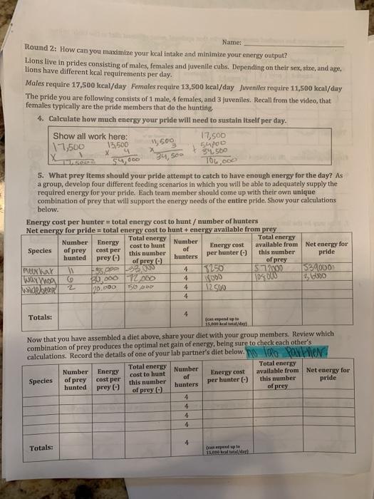 Life Of A Hunter 2 Team 6 Omega Name Life As A Hunter Part 2 Round 2 How Can You Maximize Your Kcal Intake And Minimize Your Energy Output Lions Live Course Hero
